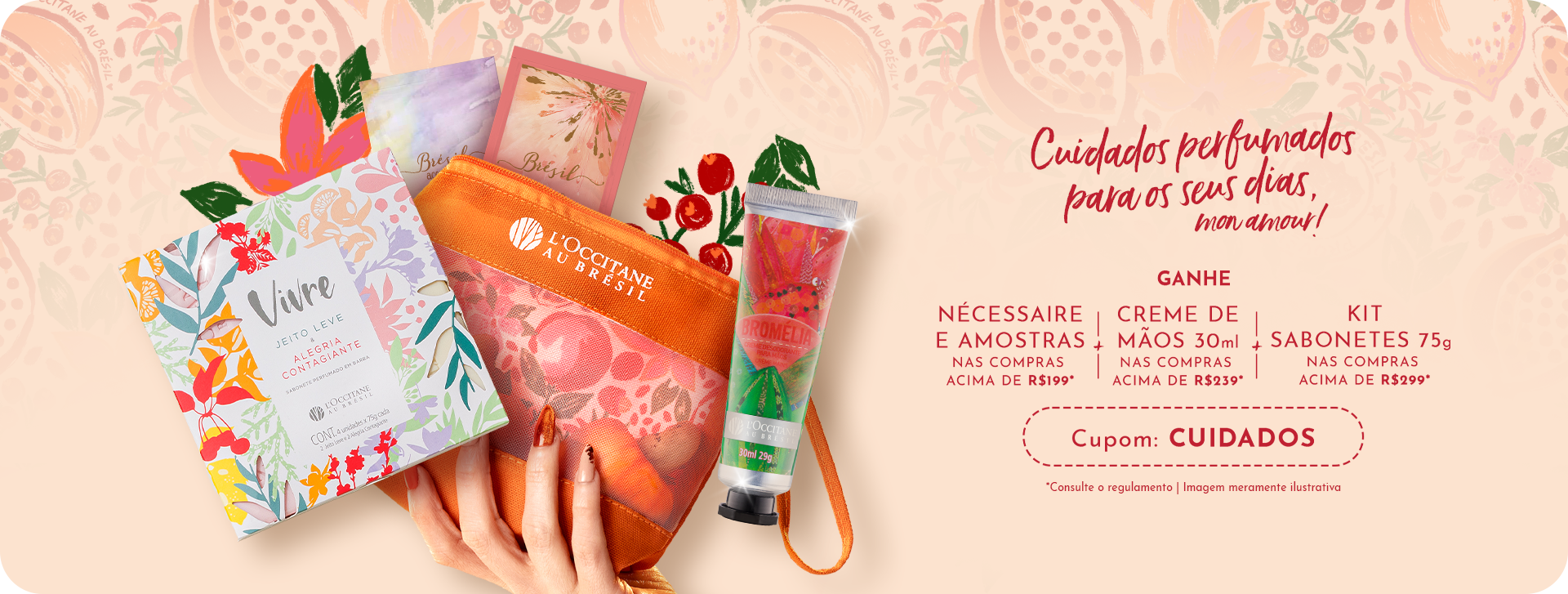 *Válido por tempo limitado ou enquanto durarem os estoques. Oferta não cumulativa com outros cupons, válida em todos os produtos da loja online, exceto com valor promocional e Vale Presente SPA. Válido para uma utilização por CPF. Para participar, insira o código promocional CUIDADOS no carrinho antes de finalizar a compra. Em caso de troca ou devolução, os brindes devem ser incluídos. A marca se reserva o direito de alterar ou encerrar a promoção sem aviso prévio. Imagem ilustrativa.