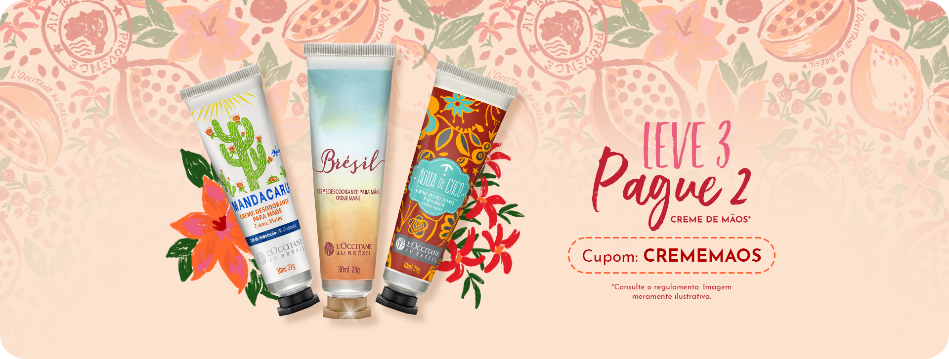 Na compra de 3 produtos participantes, 1 será concedido gratuitamente mediante a inserção do cupom CREMEMAOS no carrinho antes de finalizar a compra. Oferta válida exclusivamente para os produtos selecionados e identificados na promoção. Promoção não cumulativa com outros descontos, cupons ou promoções vigentes. Válida por tempo limitado ou enquanto durarem os estoques. A marca se reserva o direito de alterar ou encerrar a promoção sem aviso prévio. Imagem ilustrativa.
