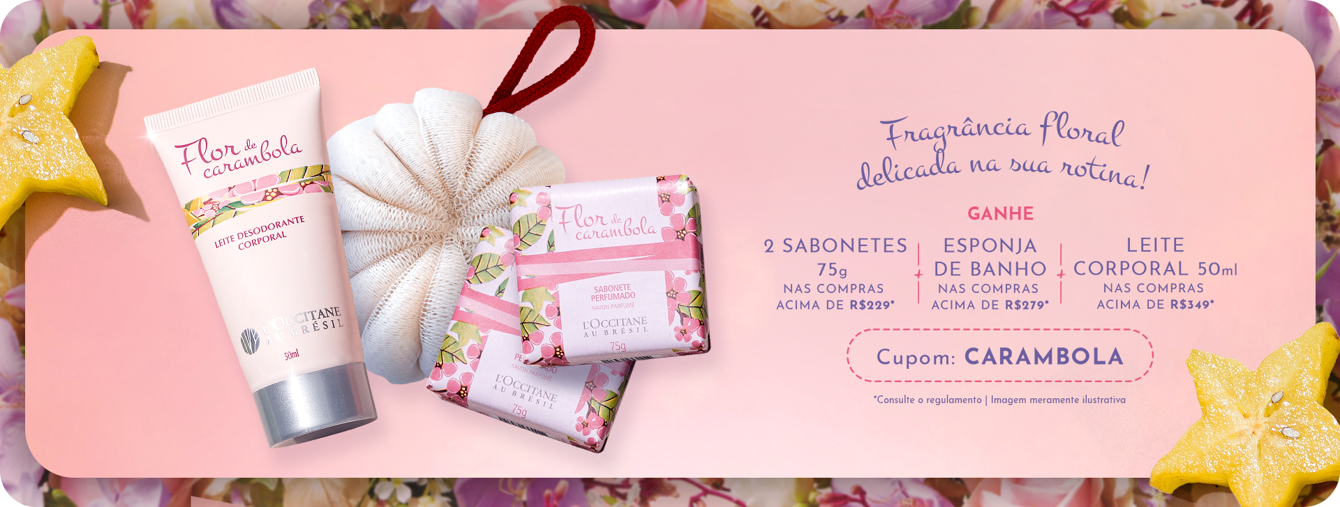 *Válido por tempo limitado ou enquanto durarem os estoques. Oferta não cumulativa com outros cupons, válida em todos os produtos da loja online, exceto com valor promocional e Vale Presente SPA. Válido para uma utilização por CPF. Para participar, insira o código promocional CARAMBOLA no carrinho antes de finalizar a compra. Em caso de troca ou devolução, os brindes devem ser incluídos. A marca se reserva o direito de alterar ou encerrar a promoção sem aviso prévio. Imagem ilustrativa.