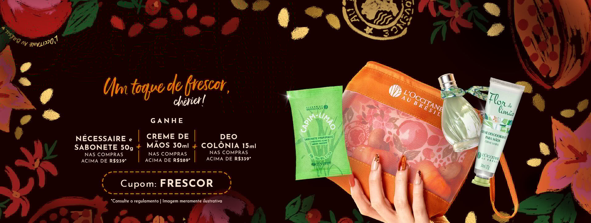 *Válido por tempo limitado ou enquanto durarem os estoques. Oferta não cumulativa com outros cupons, válida em todos os produtos da loja online, exceto com valor promocional e Vale Presente SPA. Válido para uma utilização por CPF. Para participar, insira o código promocional FRESCOR no carrinho antes de finalizar a compra. Em caso de troca ou devolução, os brindes devem ser incluídos. A marca se reserva o direito de alterar ou encerrar a promoção sem aviso prévio. Imagem ilustrativa.