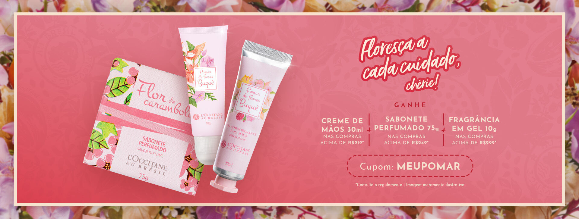 *Válido por tempo limitado ou enquanto durarem os estoques. Oferta não cumulativa com outros cupons, válida em todos os produtos da loja online, exceto com valor promocional e Vale Presente SPA. Válido para uma utilização por CPF. Para participar, insira o código promocional MEUPOMAR no carrinho antes de finalizar a compra. Em caso de troca ou devolução, os brindes devem ser incluídos. A marca se reserva o direito de alterar ou encerrar a promoção sem aviso prévio. Imagem ilustrativa.