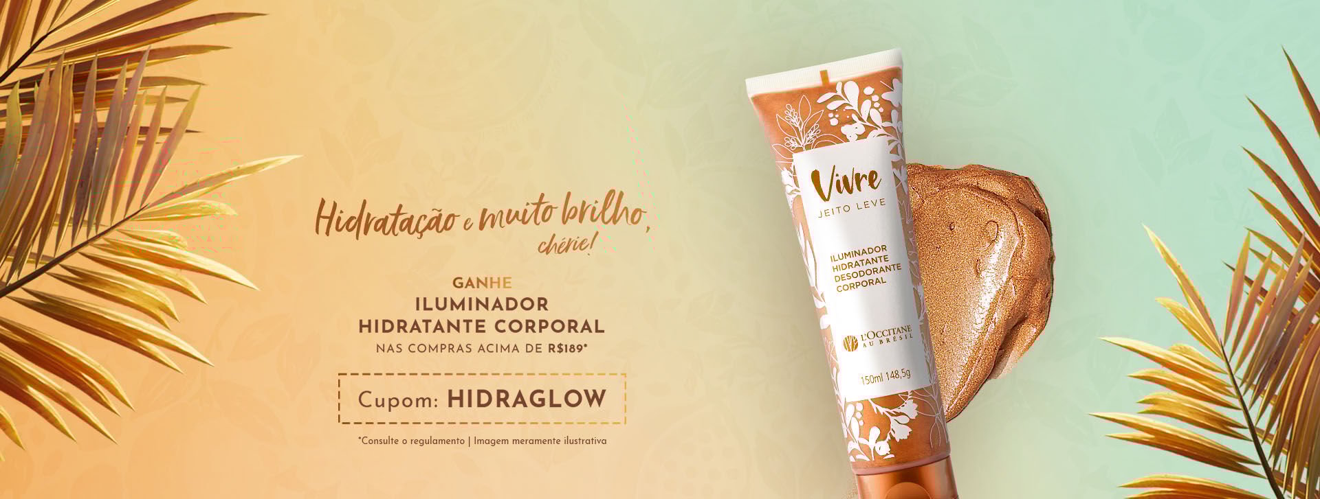 *Válido por tempo limitado ou enquanto durarem os estoques. Oferta não cumulativa com outros cupons, válida em todos os produtos da loja online, exceto com valor promocional e Vale Presente SPA. Válido para uma utilização por CPF. Para participar, insira o código promocional HIDRAGLOW no carrinho antes de finalizar a compra. Em caso de troca ou devolução, os brindes devem ser incluídos. A marca se reserva o direito de alterar ou encerrar a promoção sem aviso prévio. Imagem ilustrativa.